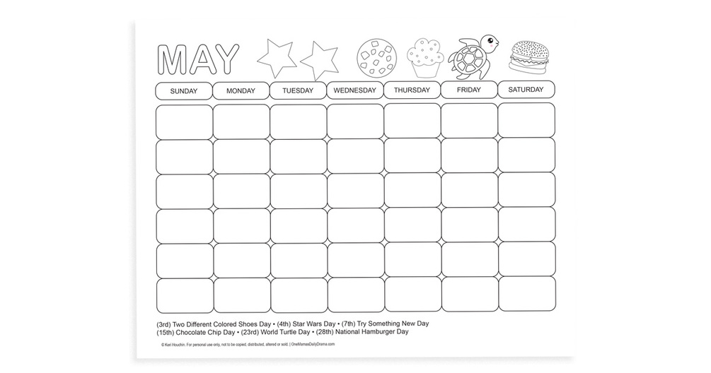 Start the new month with a May holiday printable calendar with silly holidays and space to fill in your own activities.