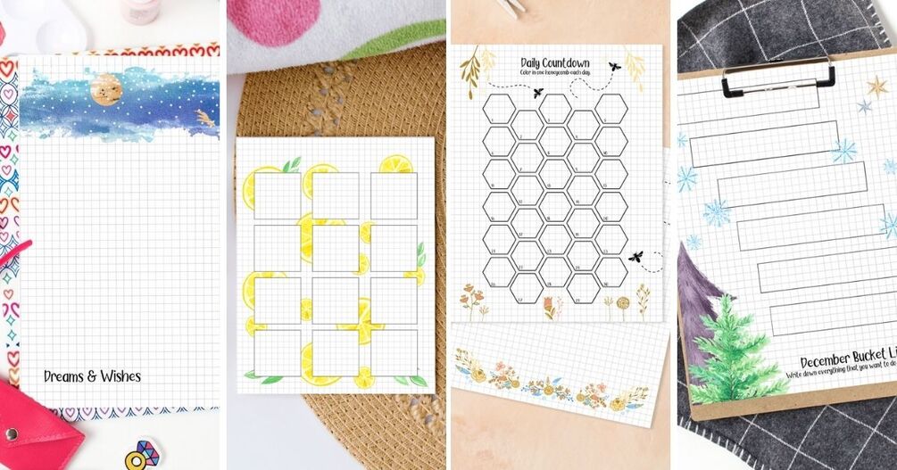 Get all 12 months of journal pages and more! The journal bundle is a set of 16 grid/bullet journal style pages for each month, plus 10 anytime pages. See each individual item listings for more details.