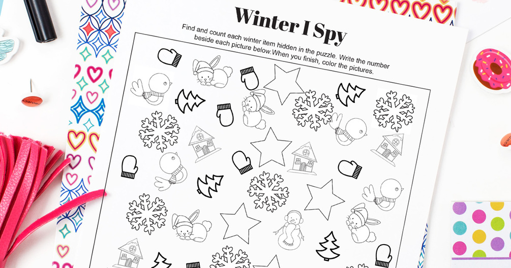 Solve the winter I spy by counting and coloring all the winter icons in this printable kids' activity sheet.